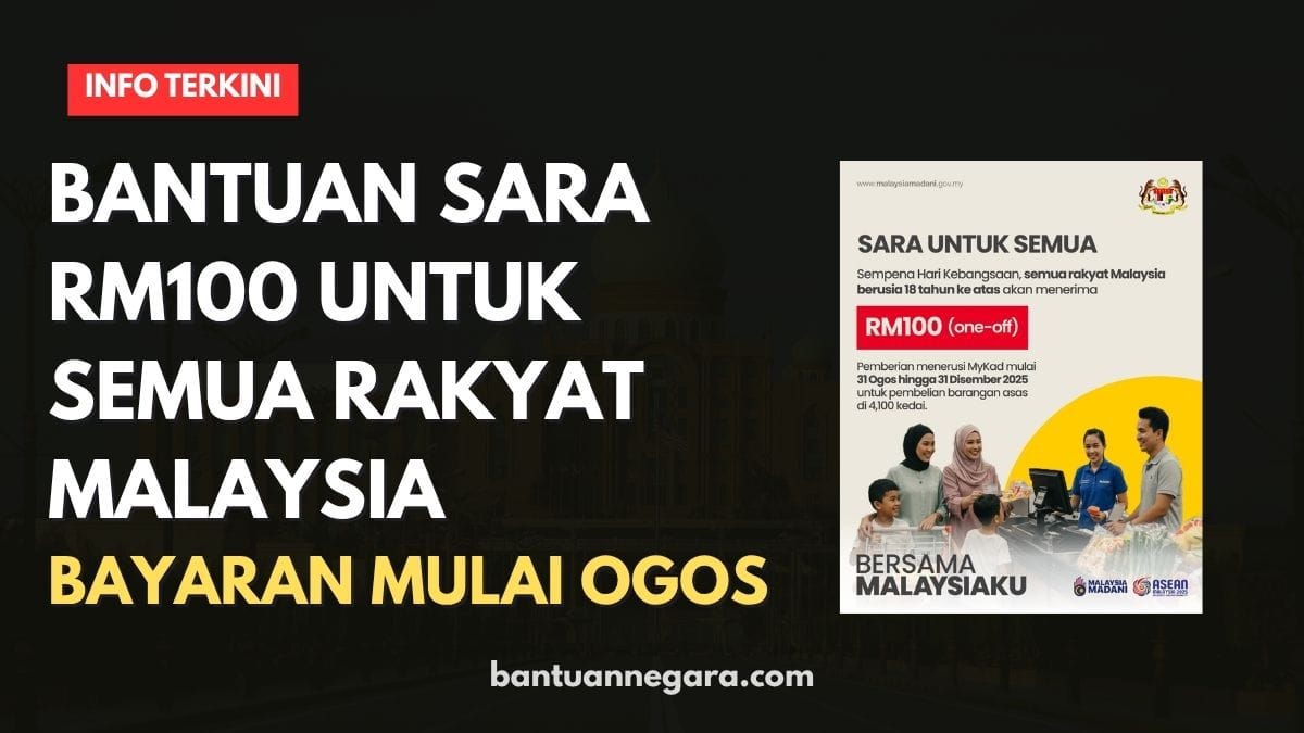SEMUA LAYAK! RM100 SARA One-Off mulai Ogos 2025! Semua warganegara Malaysia berusia 18 tahun ke atas layak menerima bantuan RM100 melalui MyKad. Semak cara menebus bantuan SARA One-Off di lebih 4,100 kedai seluruh negara dan manfaatkan peluang ini.